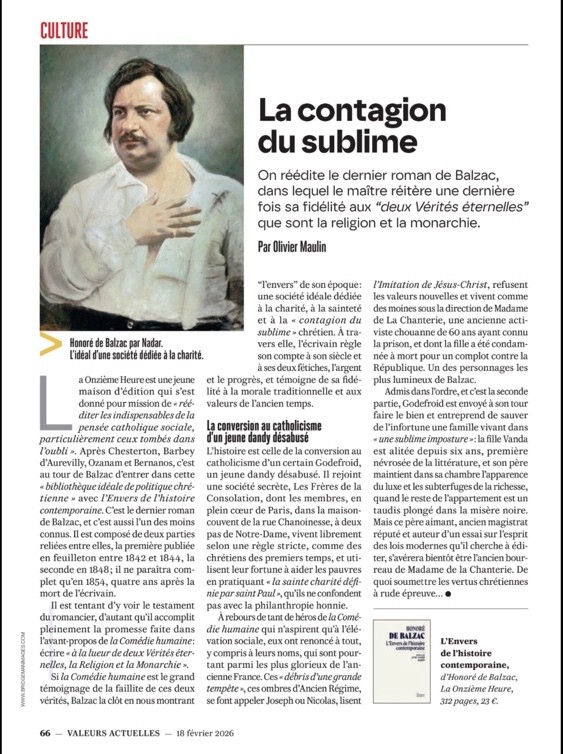Balzac dans Valeurs actuelles, 18 février 2026