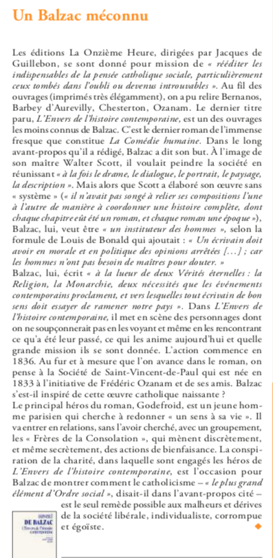 Balzac par Yves Chiron dans L’Homme nouveau (février 26)